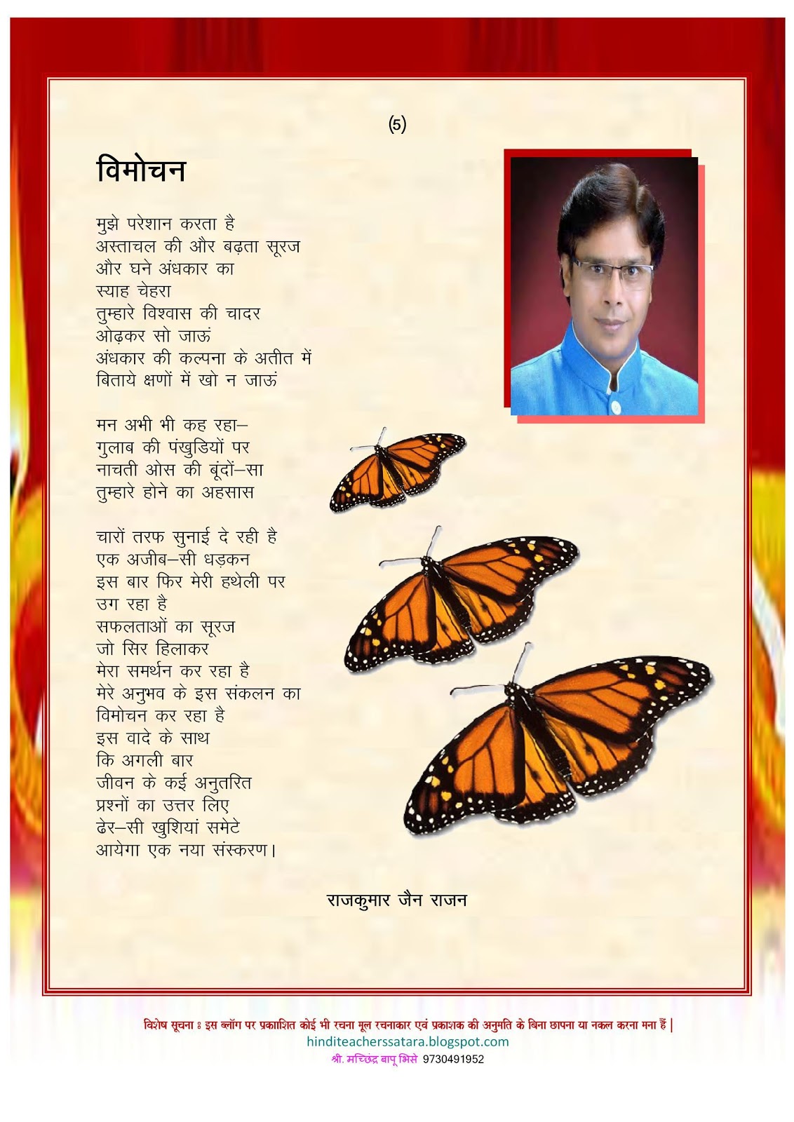 श्रीमान राजन जी की कविताएँ स्वयं की ओर से महाराष्ट्र राज्य हिंदी अध्यापक ग्रुप इस ब्लॉग के लिए प्रकाशन एवं पाठकों लिए सहर्ष प्रस्तुत हैं।